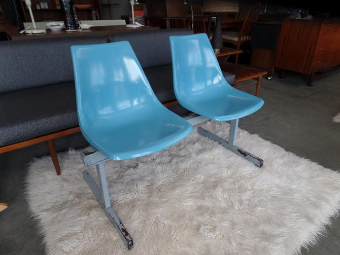 Blue Fiberglass Shell Two Seat Bench