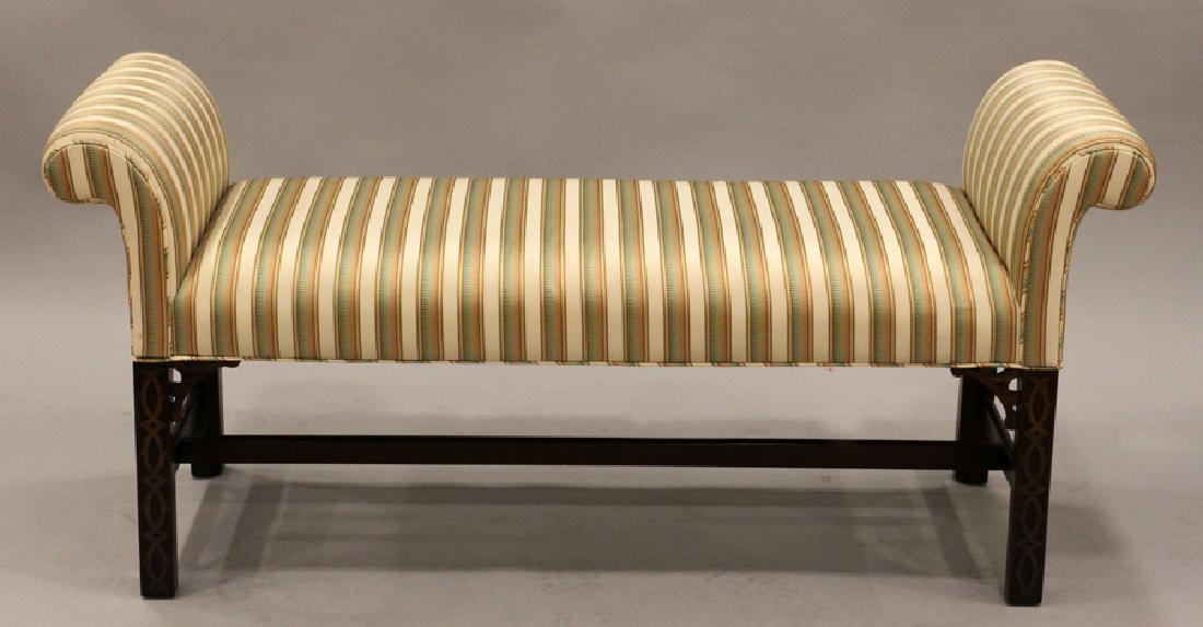 Chinese Chippendale Style Upholstered Accent Bench 21st